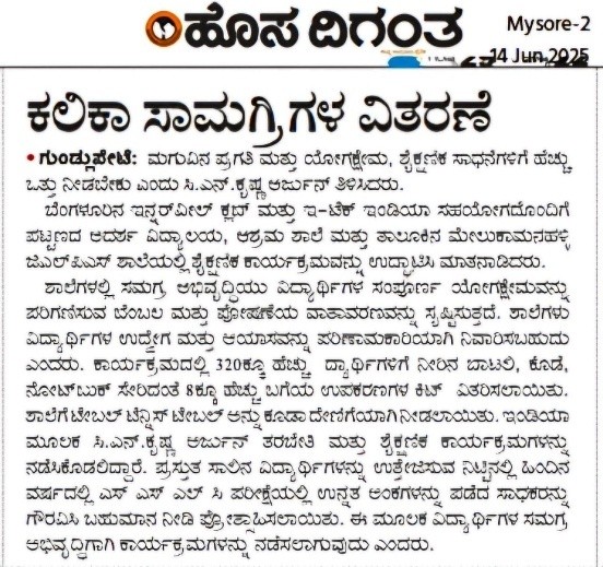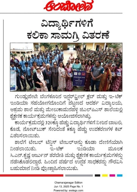 Our Program at Gundlupet in association with Innerwheel Club of Bangalore to provide empower them with a kit to help them with their academic year. EteachIndia also conducted a SSLC workshop to the students